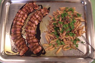 | ◆鴨肉(だと思う(^^;))のバスサミコ酢ソースかけ & 黒オリーブの実の塩水漬ペーストのペンネ。 |