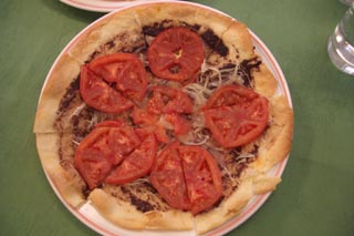 | 黒オリーブの実の塩水漬けペーストがピザソースとして使われていました。 | ||